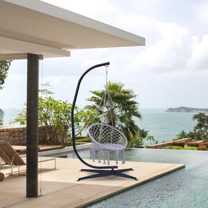 This one-person porch swing is a great spot to unwind. The design is stylish and the comfort is superb. It’s well-built and perfect for my balcony. Very pleased with it!