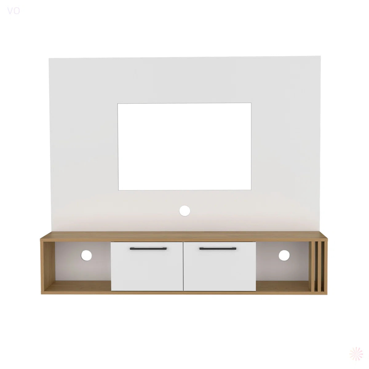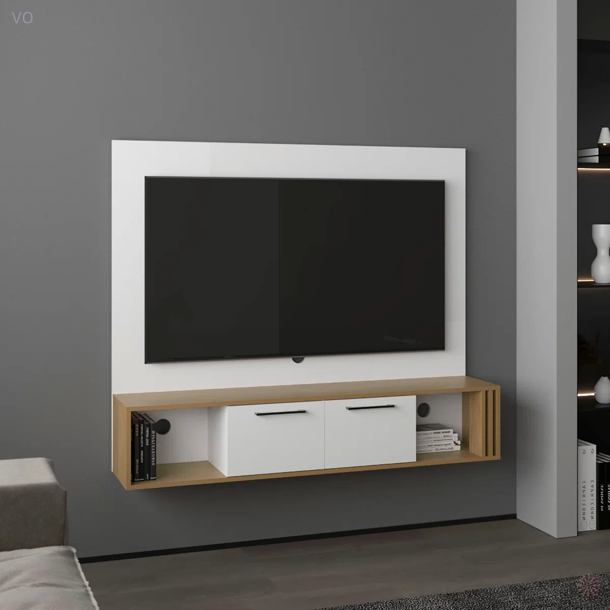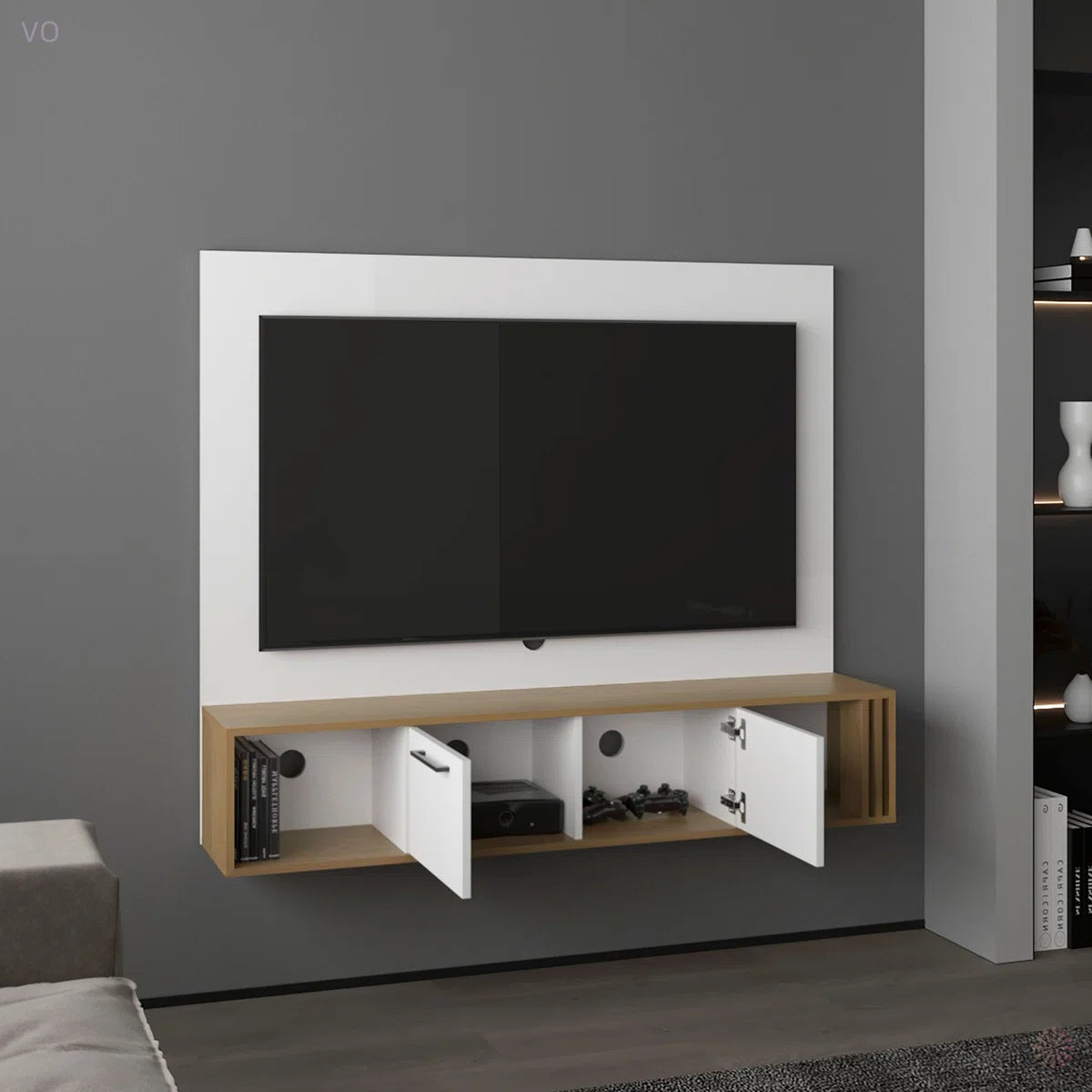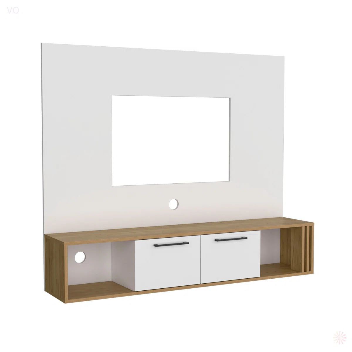tv panel: 56" Floating tv panel with 2 Cabinets, 4 Shelves, and Cable ManagementAmple Storage: For a variety of storage choices, the base shelf has two cupboards and... Read more