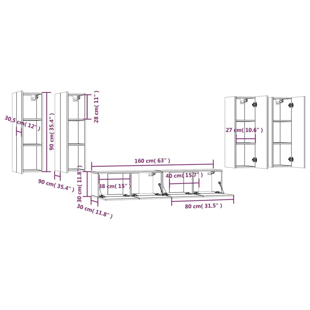 tv panel: 6-Piece tv panel and Entertainment Center Set in Durable Engineered Wood Finish