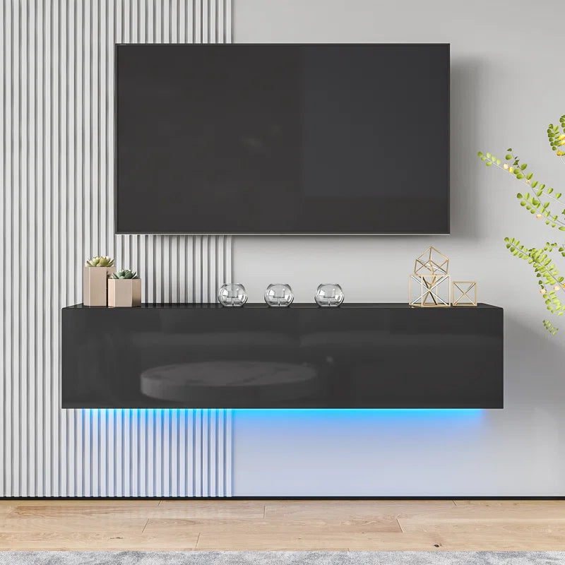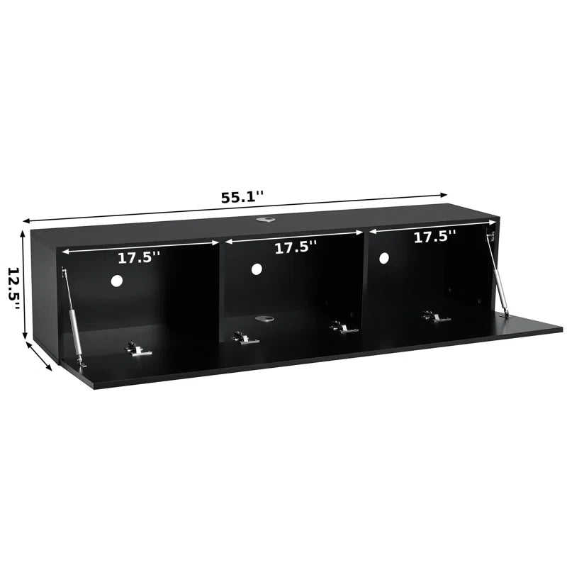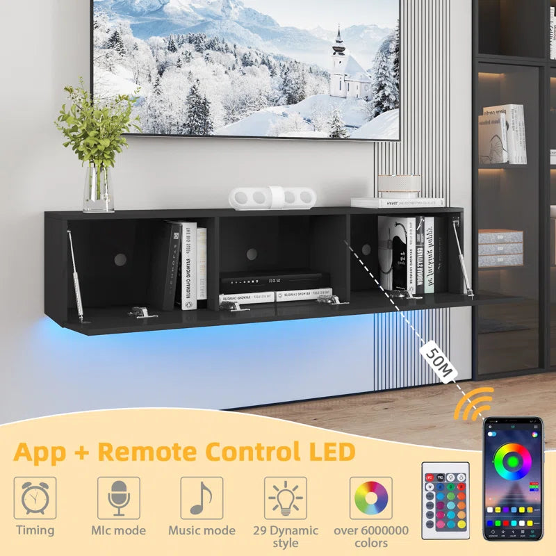 tv panel: 63" Floating TV Console with LED Lighting and Hidden Media Storage
