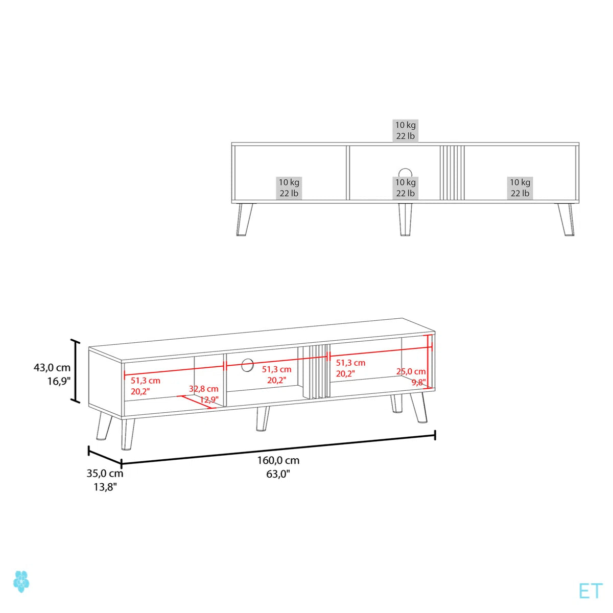 Roomy Design: It fits up to a 70" TV and measures 63" W × 17" H x 13.8" D, giving you plenty of room for all of your entertainment requirements.