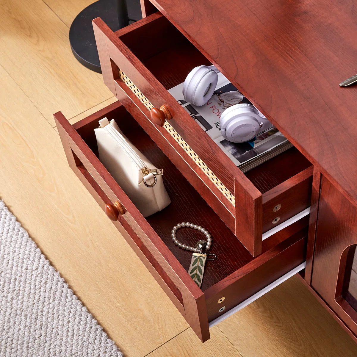 - [Rustic Rattan-Inspired Design]: Your house will seem warm and welcoming thanks to the intertwined rattan drawers, which add a chic rustic touch. This style is perfect for a modern or farmhouse-inspired home since it gives your room individuality and warmth.