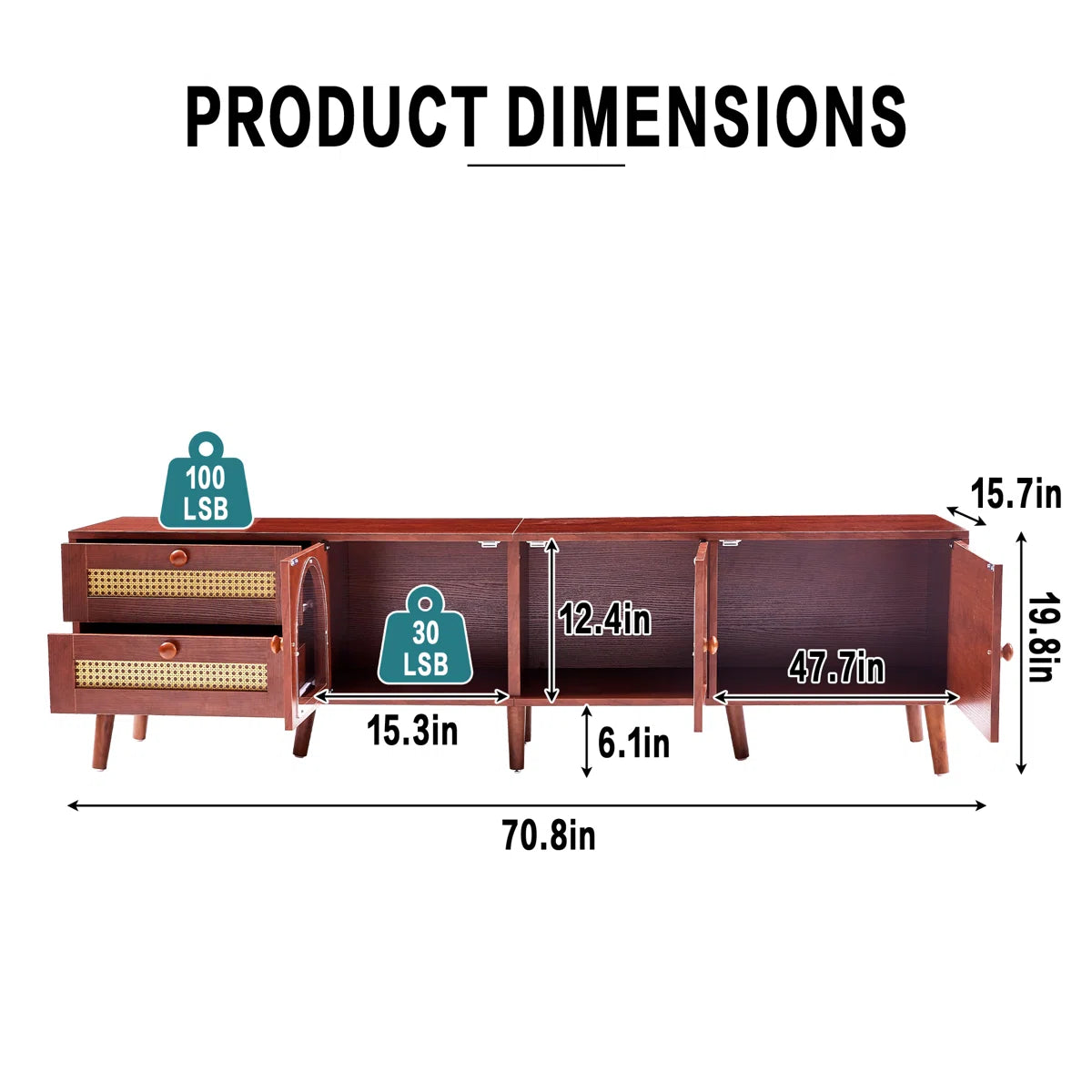 Overall 70.8'' W X 15.7'' D X 19.8'' H
