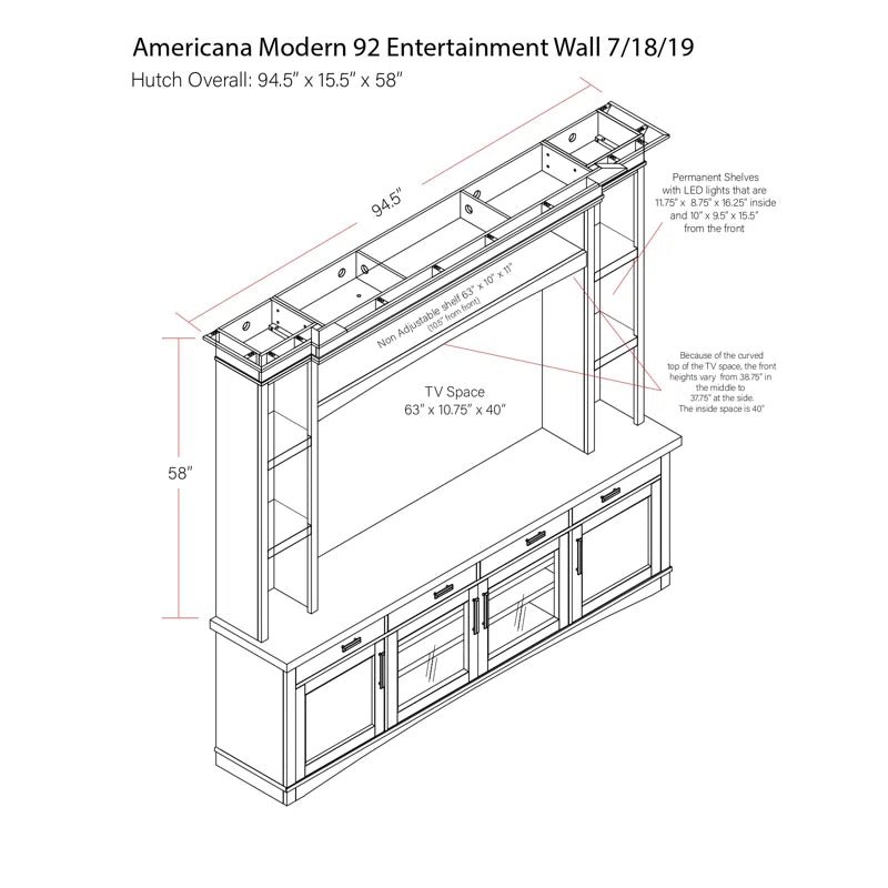 Overall 88'' H X 95'' W X 18'' D