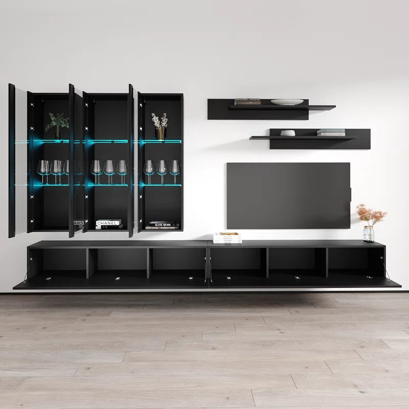 tv panel: 88" Floating Media Console with Storage Shelves and Contemporary Style