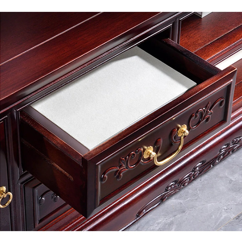 Every solid wood TV cabinet has a sturdy, roomy design, smooth, basic lines that go well with many types of interior design, and it adds visual appeal and a sense of space.