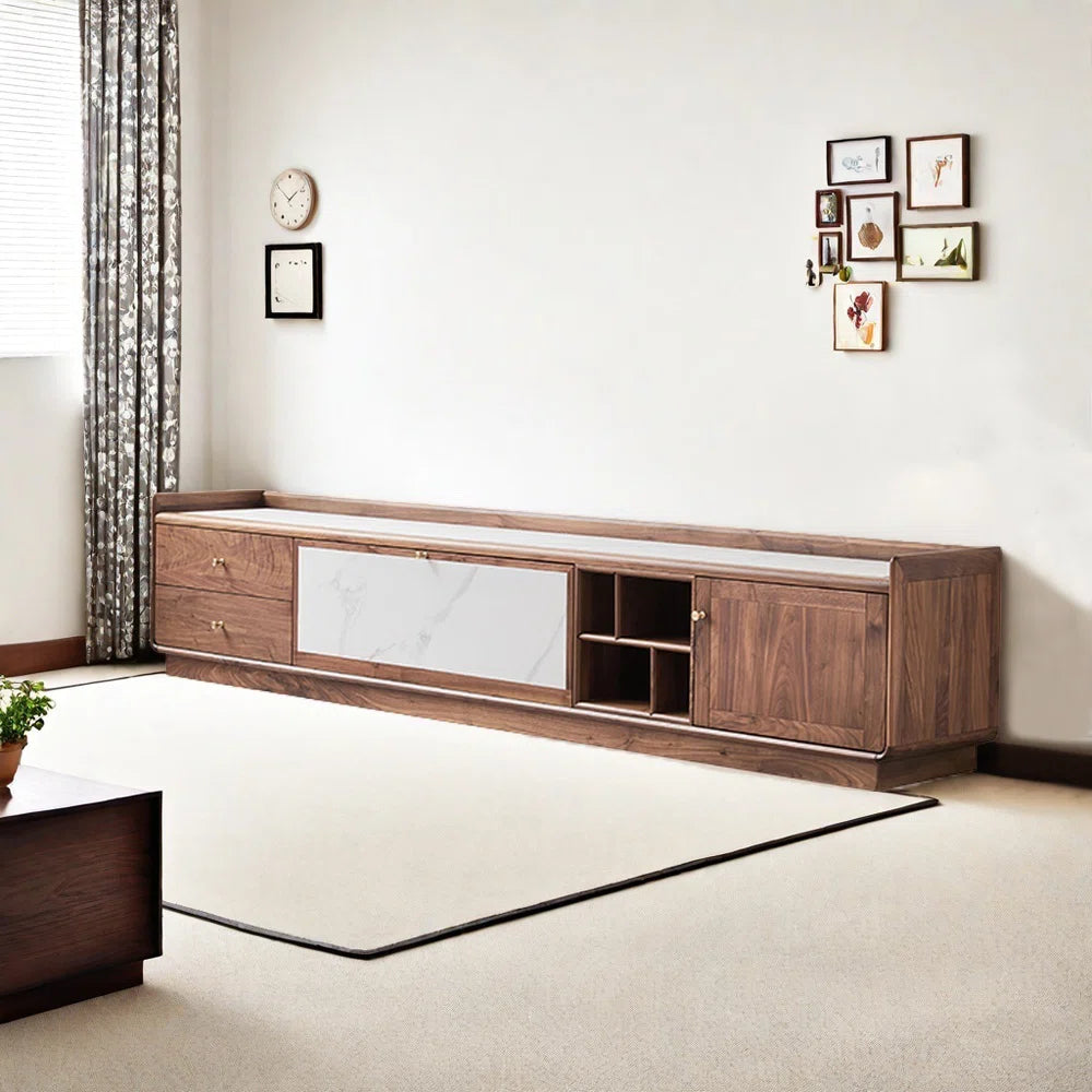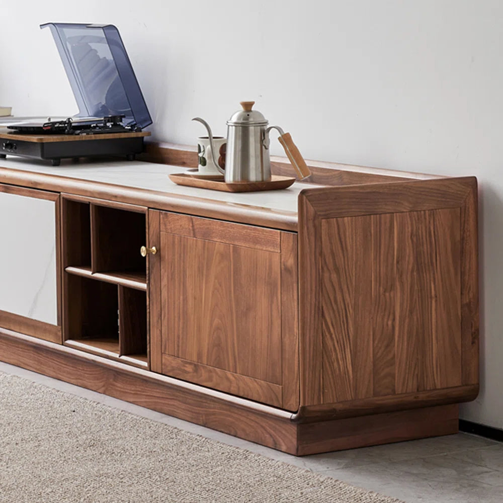 European-style solid wood cabinet legs, storage tv panel, and countertop with sintered stone