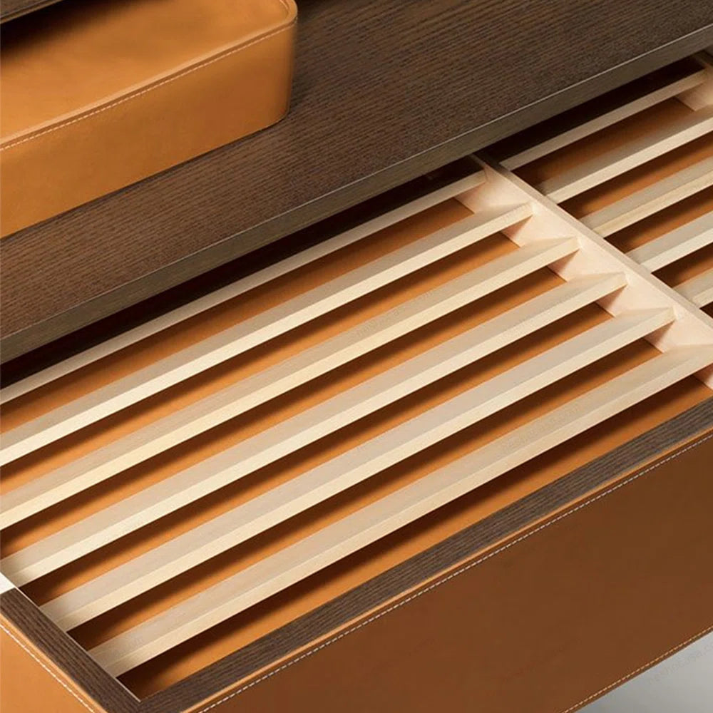 - To improve storage usefulness, the tv panel has huge capacity drawers. The drawer's smart design maximizes available space. In addition to keeping the living area tidy, the high-capacity drawer may hold more random objects. The drawer's surface complements the tv panel's design and is both elegant and useful.