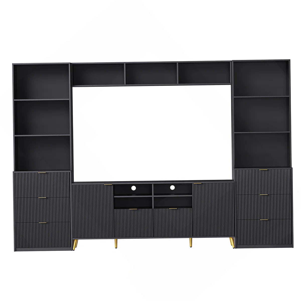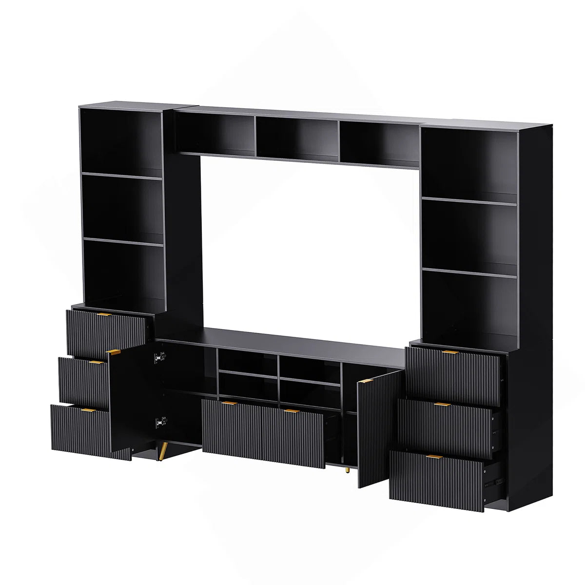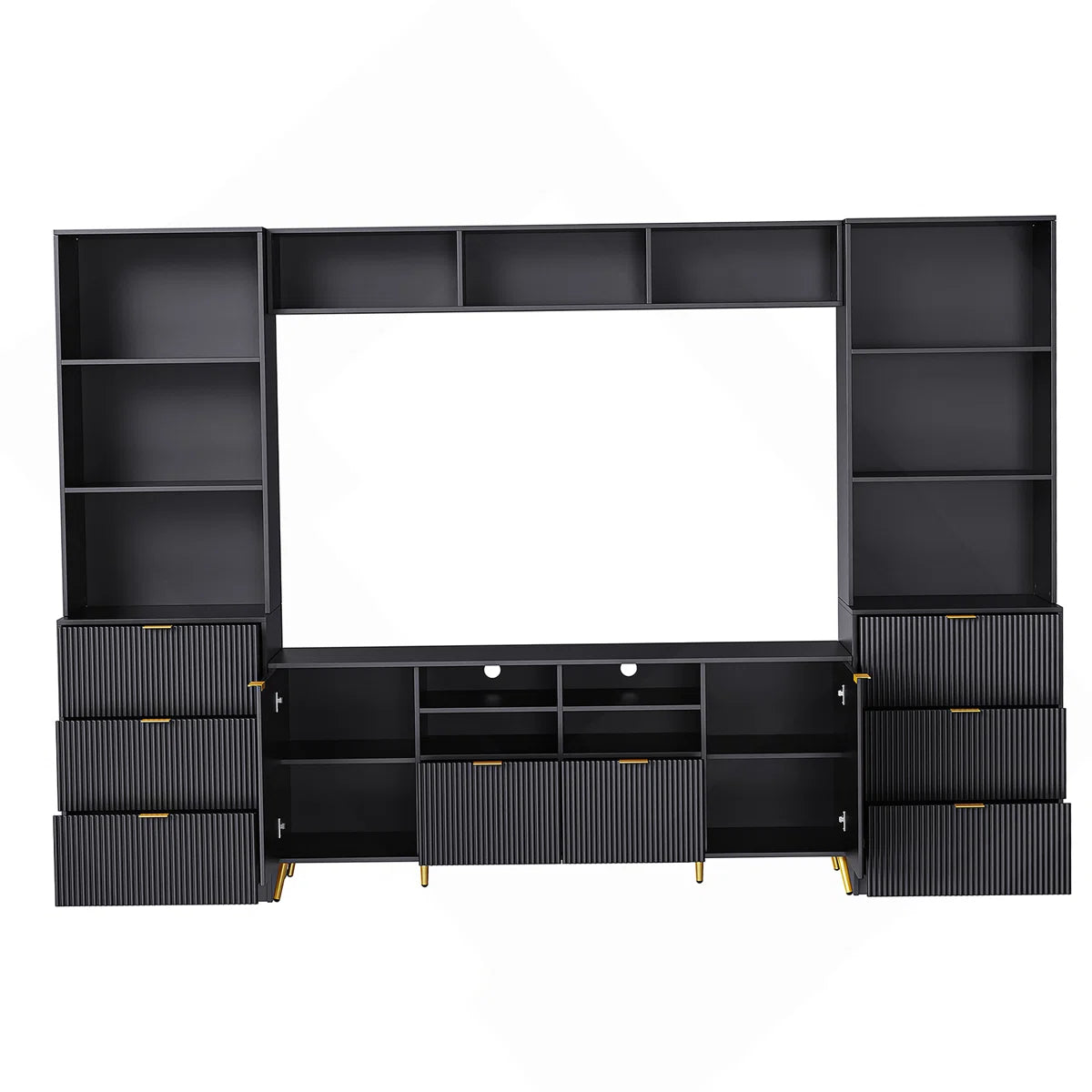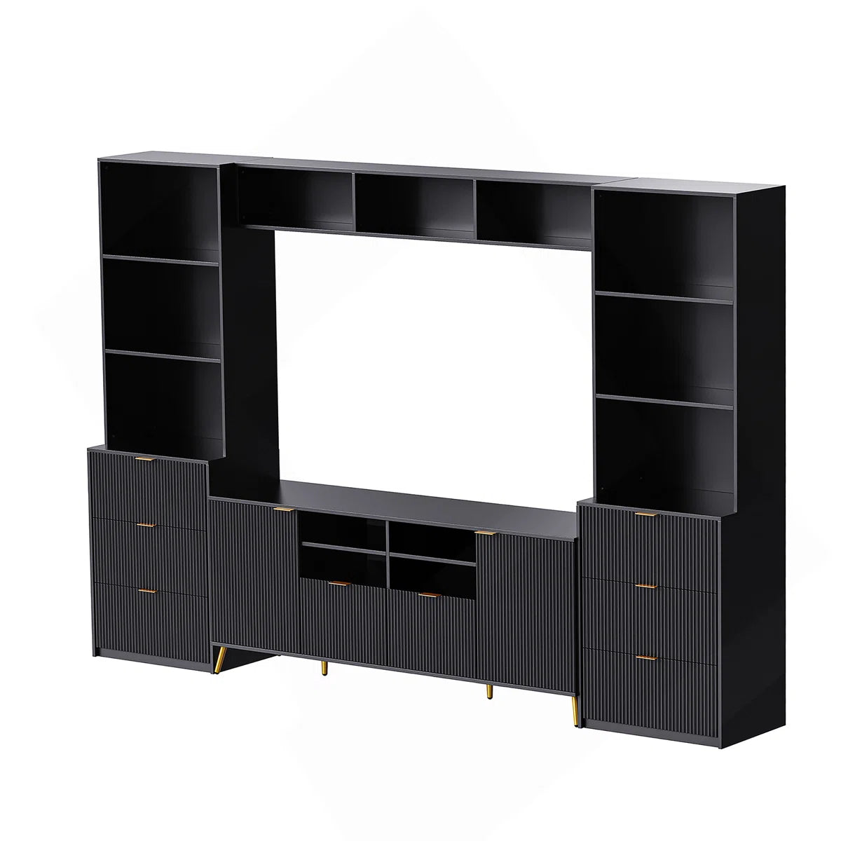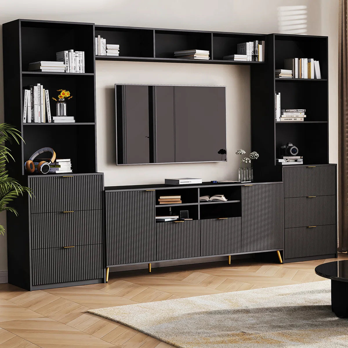 tv panel: Multi-Storage 4-Piece Media Center with Shelves, Cabinets, and Drawer Storage Compartments