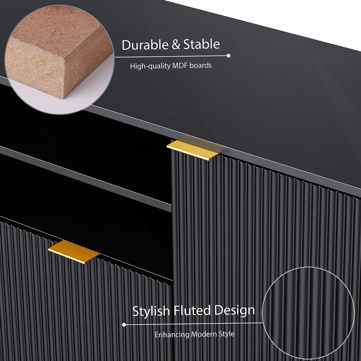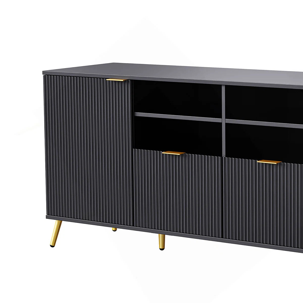Any modern house needs this TV cabinet since it combines design and usefulness. The fireplace provides a sense of coziness and warmth, and the high gloss finish gives it a sleek and elegant appearance. The temperature may be changed to provide the ideal ambiance for any event. The cabinet has lots of storage space, including open shelves and cupboards, to help you maintain a clutter-free and orderly living area. The simple assembly may save time and effort, and the strong frame and superior production process guarantee long-lasting durability. Whether you're lounging with loved ones, playing games, or watching movies, this TV cabinet is the ideal complement to your house.