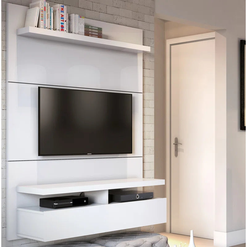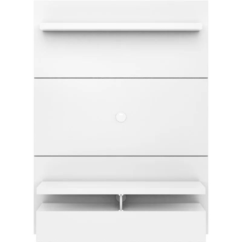 Though smaller in size, Theater Panel 1.2 has the same fundamental design as the Everley theater panels 2.2 and 1.8. Just use the integrated TV mount to secure it to the panel, then recline, unwind, and take in the scenery. Your TV and accessories may be kept organized with the Everley 1.2 TV stand. To minimize floor space and mount your TV effortlessly, the Everley 1.2 has built-in brackets! Includes two roomy cubbies with flip-down doors and two media shelves. has an overhead shelf for collecting tables and trophies, as well as for displaying photos. Your TV stand will always seem brand new thanks to the distinctive finishes that make cleaning simple. For brick and concrete walls, it is advised. Microbe antibacterial protection shields the distinctive paint.